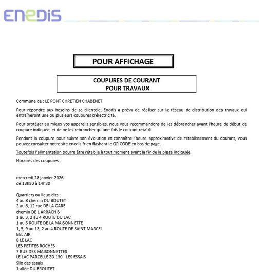 Coupures de Courant prévues pour travaux (28 janvier)