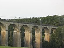 Le viaduc comprend 13 arches de 20 m de large ; il est haut de 38 m. Pendant la guerre, bombardé mais manqué, la 4e arche fut dynamitée par le maquis. Tranchée, tunnel et remblai auraient pu être évités en faisant passer les voies par le petit vallon situé en amont de la rivière, à 1 km de l’église, on peut penser que le Comte De Poix, important actionnaire de la compagnie du chemin de fer de Paris à Orléans, a fait revoir le tracé pour qu’il évite ses vignes et son château. Son wagon spécialement aménagé était stationné en gare de Chabenet.