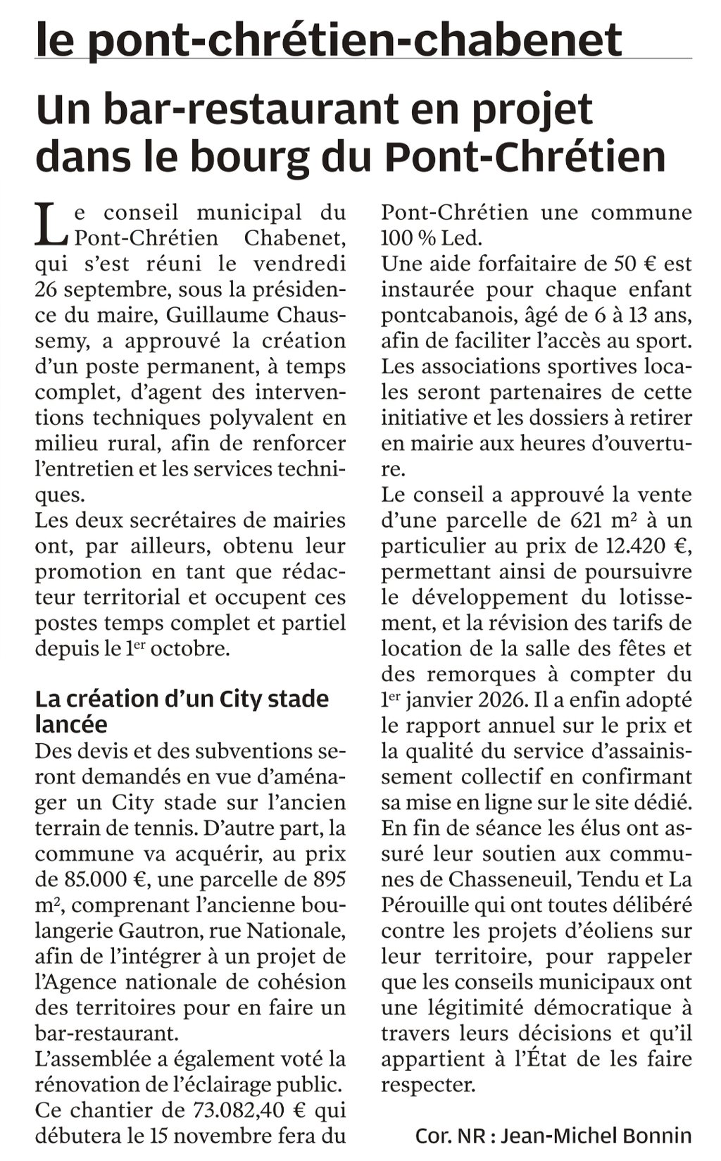 Le secrétariat de la Mairie de Pont-Chrétien-Chabenet est ouvert au public du lundi au vendredi, de 14h00 à 17h30.